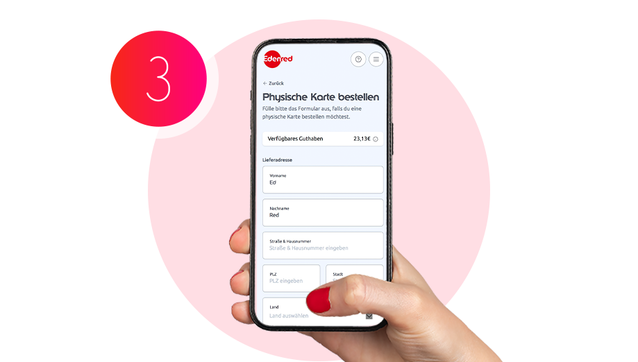 Wichtig: Eine physische Karte im Bankkartenformat (als Ergänzung zu deiner virtuellen Karte) kannst du erst nach der ersten Aufladung bestellen. Zudem benötigst du dafür ein Mindestguthaben von 8,45 EUR. Dein Arbeitgeber entscheidet, ob er die Kosten für die Karte übernimmt oder ob du sie selbst trägst. Solltest du die Kosten übernehmen, werden diese direkt von deinem Guthaben abgezogen. Die entsprechende Information erhältst du während des Bestellvorgangs.